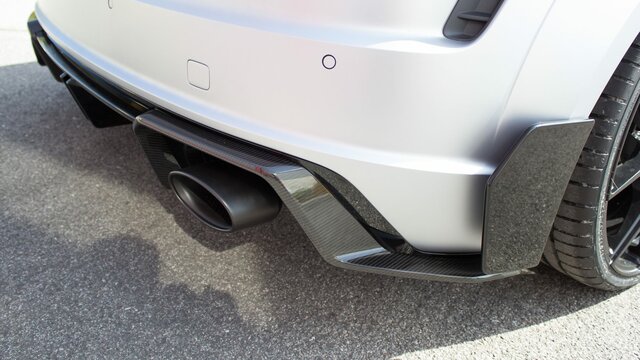 Das Aerodynamikpaket, original Audi Sport, bestehend aus Frontpaket (Frontlippe dreiteilig, Flaps, Lufteinlässe, Flicks) Heckpaket (Diffusor und Flaps),